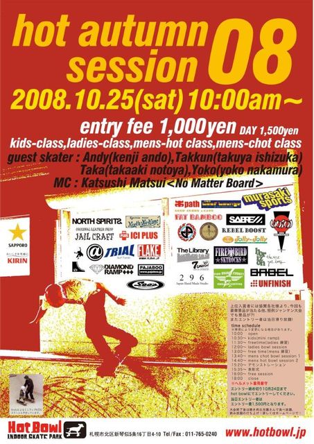 イベントします。 キッズはランプセッション! レディース・メンズは BOWLセッション! 協賛社さん・各メーカーさん・各ショップさんから豪華景品当たりますよ! イベント終了後には、打ち上げを焼き肉北光園さんで行います。 スケートしないけど、肉だけでもの人達もOKです。 イベントエントリー&打ち上げエントリー受付中です。 是非!