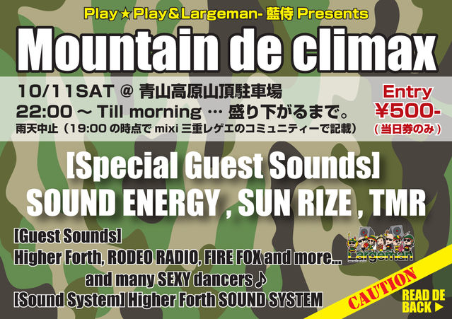 雨天中止(19:00の時点でmixi三重レゲエ情報のコミュニティーで記載)