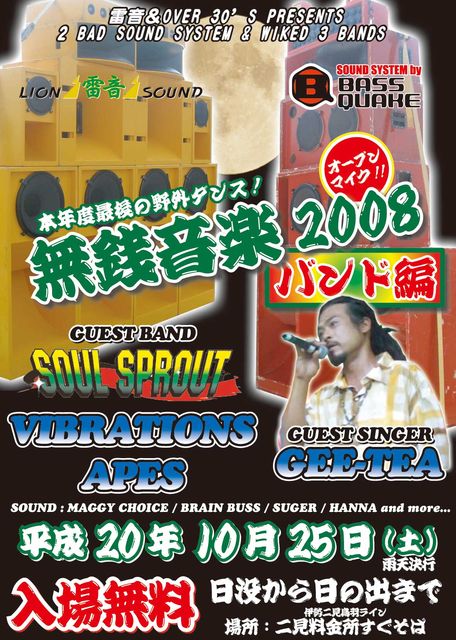 雨天中止(19:00の時点でmixi三重REGGAEのコミュニティーで記載)