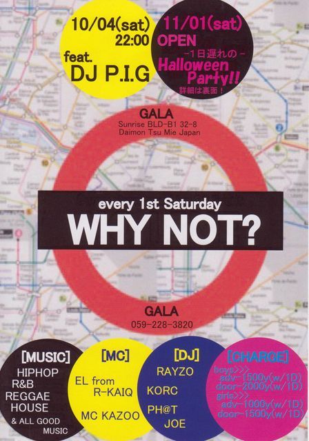 8月、9月と県内で活躍するアーティストに出てもらいましたが、今回も鈴鹿からDJ P.I.GがWHY NOT?初参戦です