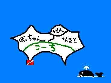 Blue次のイベント企画!「高知に行きませんか?」 秋もだんだん近づいてきました。そんな実験中台風の空を見たときに思いつきました・・・ 「潜りたい!高知で」 そんな思いつきですが、よくよく考えると淡路島通ればすぐに行けることを思い出した。倉敷から瀬戸大橋通れば、讃岐うどんが食える・・・!なんか四国は旨いものが多い気がしてきた!勝手に盛り上がってきたので、実家の車出す事にして勝手に企画!! ポイント的には、黒潮がぶつかるため透明度はそこそこ良し!基本はマクロ系だけど、沖ノ島あたりは大物が出るらしい。 ってこ
