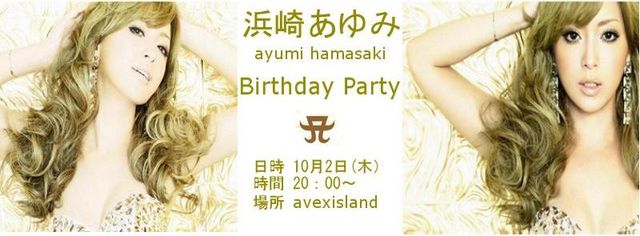 今年もセカンドライフ内で、ファン主催「浜崎あゆみバースディパーティー」を開催します。 「ayumi hamasaki Birtday Party」 セカンドライフ内では去年の「バースディパーティー」、今年の「デビュー10周年記念イベント」に続き3回目です。 2回ともたくさんの人の来場とても嬉しかったです。 10月2日はまた、あゆの曲聴きながらみんなでお祝いしましょう♪ 日時:10月2日20:00〜 場所:avexisland http://slurl.com/secondlife/avexisland/128/106/43 *浜崎あゆみ本人の参加はありません。