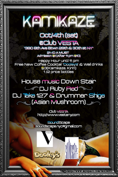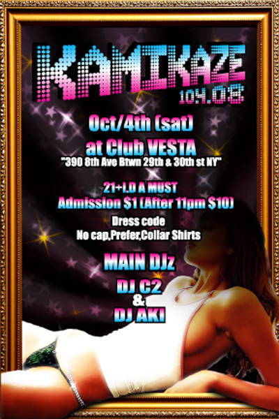 Party ‘KAMIKAZE‘ @CLUB・VESTA(8th Ave Btwn 29th & 30th)