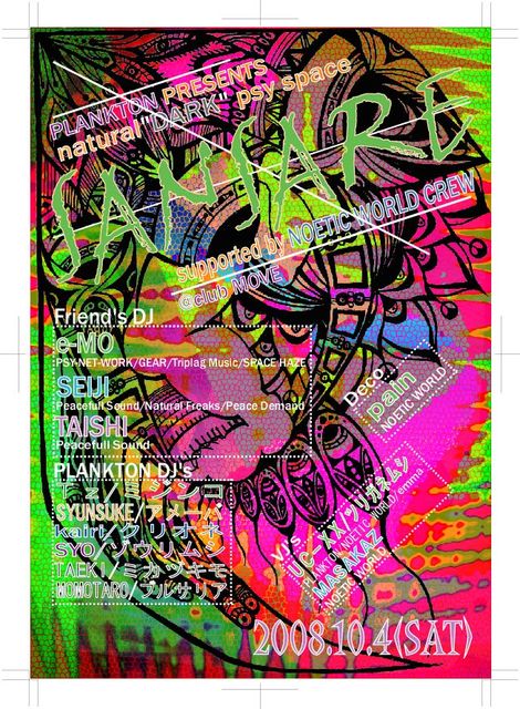 前回1stにお越し頂いた皆様ありがとうございました!! 今回、無事に2ndを迎えることができました!! このPARTYで主としている「DARK PSYCHEDELIC MUSIC」は滋賀では珍しいジャンルです☆ この音は「上がってる」「下がってる」「速い」「遅い」だけでは説明できない「暗い音」ではなく「深い音」です。 例えれば「喜怒哀楽」「春夏秋冬」「風林火山」など、人によって音を聴いた時のインスピレーションが違う所がリアルなのもまた面白い所です☆ その中で自分の好きな音を発見できるかもしれませんね♪ そして、人それぞれ楽しみ方も