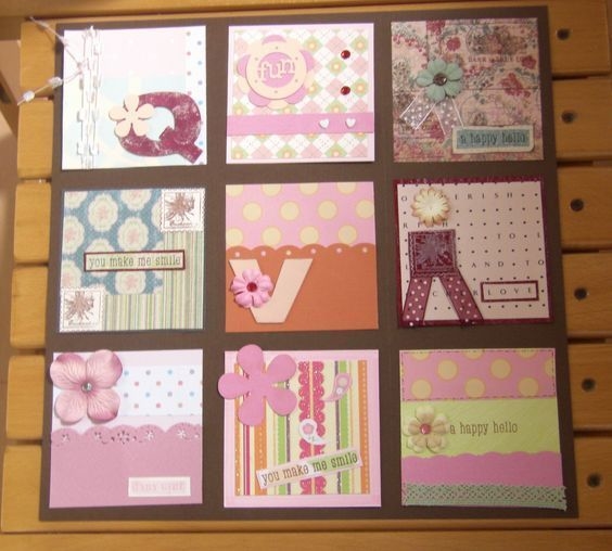 大分クラフトクラブ代表のマルデスカです。 10月にある大分スクラップブッキング祭り(大分クラフトクラブ主催)に、 皆さんのカードを展示させていただけたらと思っています。 展示方法としては画像のように、 12インチ1枚に9枚の3.5インチ角のカードを飾る予定です。 そこで交換会もかねて皆さんのカードを、 大分クラフトクラブに提供していただけないでしょうか? 皆さんの作品9枚で12インチの作品にして、 それをつないでイベント会場の壁に展示します。 大分クラフトクラブではFriendship Card 交換会