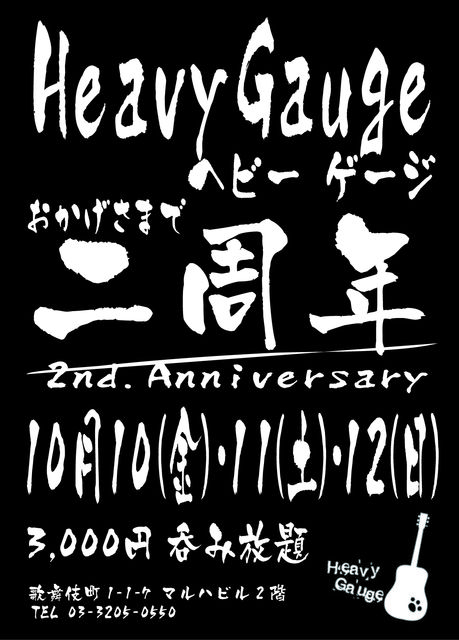 10月10日 弁天の住人と言われ続けてきた、ベース担当 エイブさん http://mixi.jp/show_friend.pl?id=1383103 アイドルクラスの人気を誇る、ドラム担当 まりっぺ http://mixi.jp/show_friend.pl?id=7177499 Rockなお二人のバースデーパーティーを開催いたします。 OPEN 18:30 START 集まってきたら CHARGE なし 尚、お祝い演奏ご協力