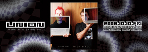 eventのお知らせです Flatbushでも、チケット取り扱っております music: electro irregular party UNION vol.1 2008 10/10 (Fri) OPEN 22:00 adv: 3000yen door: 4000yen GUEST LIVE : PITCH BLACK ( Dub Mission/NZ ) PITCH BLACKはPaddy Free と Michael Hodgsonによるユニットである。 1997年の活動開始以降彼らは、ニュージーランドのダンスミュージック・シーンに多大なる貢献と多くの賞賛を得てきた。 彼らの創りだすサウンドは、