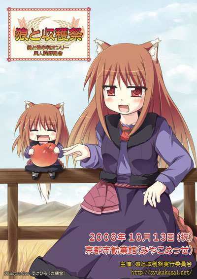 狼と香辛料オンリー同人誌即売会「狼と収穫祭」 公式:http://syukakusai.net/ http://mixi.jp/view_community.pl?id=3283995 日時:2008年10月13日(祝) 場所:京都市勧業館(みやこめっせ) 募集:直接参加30スペース、委託参加10スペース 主催:狼と収穫祭実行委員会