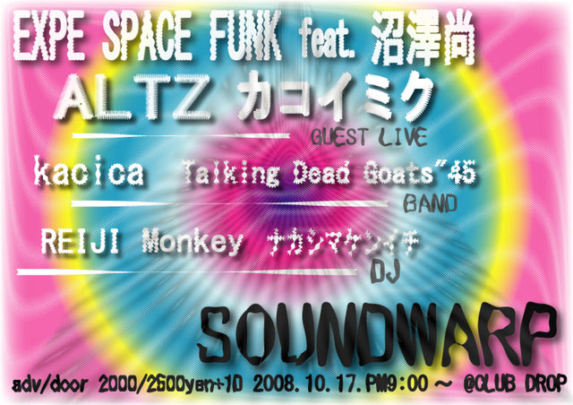 超豪華な踊れるメンツがDROPに集まります!!!最早言葉は不要のSPACE GUITAR PLAYER、EXPE率いるEXPE SPACE FUNK feat.沼澤尚、関西が宇宙に誇る5次元パーティー〈FLOWER OF LIFE〉を核に,トラックライブ・DJ・リミックスワークを様々な名義を使い分け、しかける奇人ALTZ、ソウルフルで力強く、時に優しい歌声で魅了するカコイミク、以上をゲストに迎え、心斎橋CLUB DROPで最高にダンサブルでスペイシーなスペシャルパーティーが開催!!!BAND、DJ陣も一筋縄ではいかない、癖の有る強者がパーティーを盛り上
