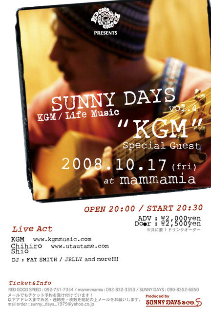 管理人様、イベント告知失礼します 17日金曜、仙台より KGMが初!九州入りしてくれます! 千尋さんという女性シンガーとjoint liveです!! 初!福岡 盛りあがっておむかえしたいところ!です about... ■KGM 地元仙台をはじめ関東、東日本で多くの野外イベントや レゲエバー、カフェなどを中心に精力的に活動。 自身のルーツでもあるREGGAEを大切にしつつも、 あくまで自然体で活動を続けるソングライター。 その圧倒的な歌唱力と心揺さぶるリリックがMIX-CDや インターネットを中心に口コミで話題に。 日