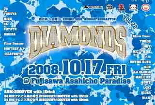 【DIAMONDS−Vol'22】 2008.10.17(Fri) @F.A.P ■F.A.P.公式WEBサイト http://www.club-fap.com ■F.A.P.藤沢朝日町パラダイス地図です。 http://mixi.jp/view_bbs.pl?id=8282201&comm_id=246043 ◆DIAMONDS@F.A.P(MIXI コミュ) http://mixi.jp/view_community.pl?id=3382504 ◆赤提灯 de ないと (DJ TAKUYAのBLOG) http://djtakuya.blog.shinobi.jp ☆HIPHOP,R&B,REGGAE,REGAETTON☆ ▲O