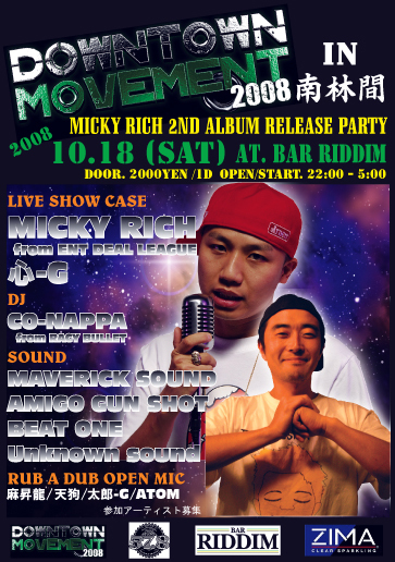 10/18(土曜)@ BAR RIDDIM ¥2000−1D