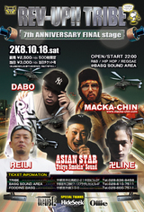 管理人様、告知失礼します REV-UP!!TRIBE 7th ANNIVERSARY FINAL stage 2K8.10.18.sat OPEN/START 22:00 @BASQ SOUND AREA 前売り \2500(1D) 500枚限定 当日 \3000(1D) 当日チケット有 SPECIAL GUEST DABO MACKA-CHIN ASIAN STAR REILI 卍LINE チケットお取り扱い店 TRIBE [WWW.tribe-jp.com] みなさんぜひぜひお友達をお誘い合わせのうえお越しください。