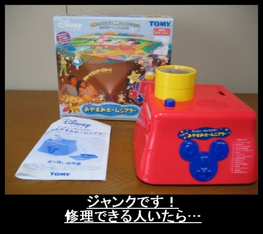 機械に詳しい人、研究用? 送料かかるので、送料払っても欲しい人のみお願いします。 ■商品名: ジャンク!ディズニーおやすみホームシアター ■傷、不良箇所: ソフトありません。起動しません。 ■受け渡し方法: 着払い希望。ヤフーゆうパックは出来ません。 ■出品地域: 新潟 ■コメント ; 壊れています! 電池入れても動きません…。 ソフト、入っていません。 修理できる人へ。 完全ジャンク品。 部品取りなどへ。 ノークレームノーリターンでお願いします。 ■締め切り :てきとうに〆ます