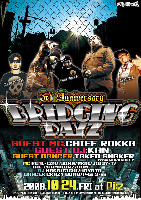 良質の神戸HIPHOPパーティーとしPI:Zで偶数月に開催され毎回一体感のあるフロアーでCLOSEまで音とお酒で楽しめイベント「BRIDIGING DAYZ」が