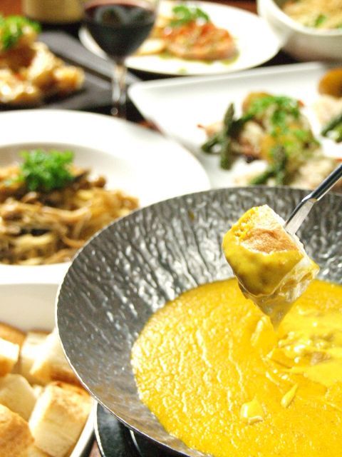 みなさんこんにちは♪ シェダイゴは日本で初めてチーズフォンデュを提供したお店なんですが、こんなチーズフォンデュが新たにメニューに登場いたしました! プレーンフォンデュやガーリックフォンデュ、ブルーチーズフォンデュはもちろん、カボチャのフォンデュ、バジルのフォンデュ、明太子のフォンデュ‥まずはアクセスしてご覧ください。 http://www.chezdaigo.com/fondue.html なんと12種のチーズフォンデュと豊富な付け合わせをご用意して皆様の参加をお待ちしております。もちろんワイン、ソフトドリンクは飲み放題です。 参加料