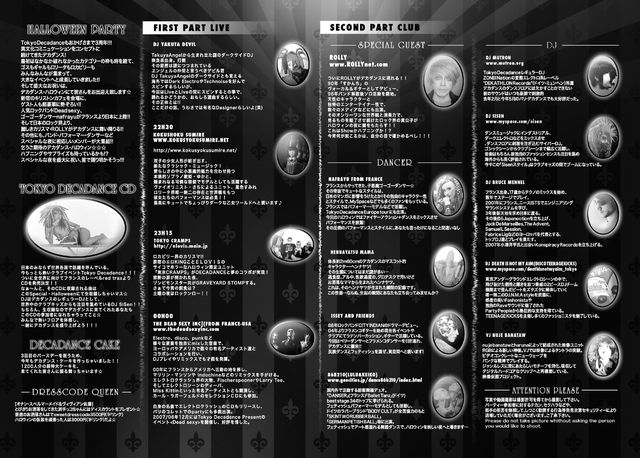 ☆デカダンス3歳のお誕生日会のお知らせです☆ 1歳で歩いた 2歳で言葉を話した 3歳で・・・・!? Tokyo Decadance DX special Halloween 日時 10月25日(土曜日)22:00 OPEN 場所 キリストンカフェ 新宿 住所 〒160-0022 東京都新宿区新宿5-17-13 オリエンタルウェーブ8・9F 電話 03-5287-2426 料金 door 4000yen, with mail or sweet dresscode*3500yen, dress code*3000yen *普通のお洒落さんはでsweetdress code 3500yen(1drink) **ハロウィンの仮装を頑張った人は3000yen(1drink) 地図 http