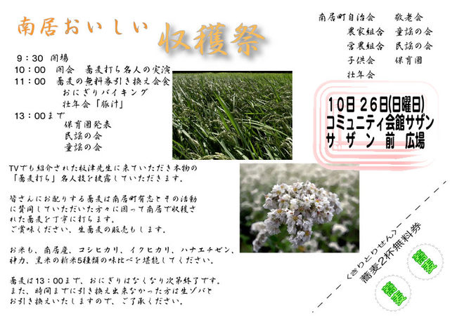 今日、案内のパンフような物が出来ました。 自治会、農家組合、営農組合、子供会、童謡の会、民謡の会、保育園の名前を入れることは自治会会長に却下されました。 主催団体がないので困りますね。 何か付け加え、削除等、アイディアを寄せてください。