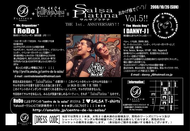 管理人様へ イベント告知です よろしくお願いします。 みな様大変長らくお待たせいたしました!! centro de la salsa   presents ★★★★★★★ ★Salsa★ ★Platina★ ★サルサプラチナ★ ★★★★★★★★★ オカゲサマデ(^-^)/ぴかぴか(新しい) 一周年記念!!exclamation ×2     @ ☆☆☆☆☆☆☆☆☆ プラチナム☆名古屋 PLATINUM    Nagoya ☆☆☆☆☆☆☆☆☆ Day: ぴかぴか(新しい)ぴかぴか(新しい)ぴかぴか(新しい) 10/26 (日) Open: 16:00〜20:00 (20時からは引き続き"Platinum Disco Night
