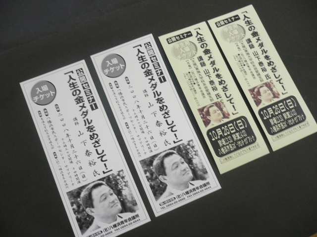 【公開セミナー】 10月26日(日) 八幡浜市民スポーツセンター サブアリーナ 開演14:00 入場無料(ただし整理券が必要です) 『人生の金メダルをめざして』 講師:山下泰裕 氏 プロフィール: ロス五輪柔道金メダリスト 東海大学体育学部教授 愛媛武道館名誉館長 あの柔道の山下さんの講演会が八幡浜で開催されます 入場は無料ですが整理券が必要です。 整理券は市内のポスターの貼っている店舗で 『整理券あります!』という案内のあるお店か、 JC事