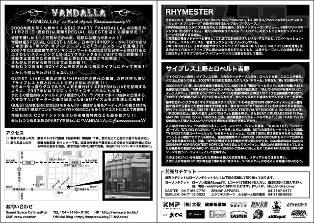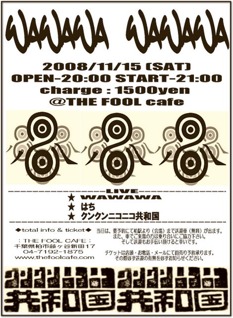23:00 start DOOR 2000YEN(1D) / W.F. 1500YEN(1D)