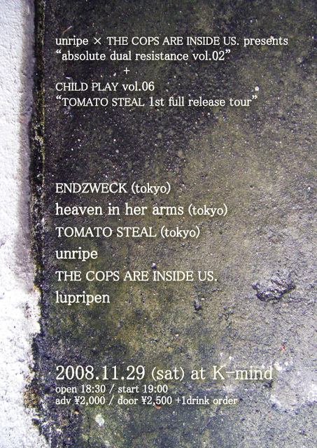 今月11/29(土) 沖縄K-mindにてunripeとthe cops are in side usの共同企画があります。