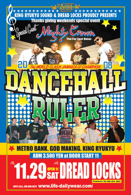 去年の12月のDANCEHALL RULAZに引き続き我らがMIGHTY CROWN in TOWNですよ!