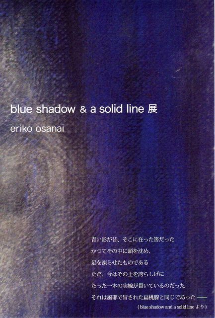 blue shadow & a solid line 展 eriko osanai 日時:2008年10月31日(金)〜11月12日(水) 木曜定休 11:00〜19:00 (最終日は17:00迄) 場所:空間実験室 ギャラリーC ドローイング、銅版画、写真、詩 など。 空間実験室 青森市古川2-19-18 tel: 017-775-8120