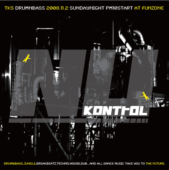 11/02(SUN) (※翌日文化の日) NU KONTROL @FUNZONE TICKET:¥1500 with 1drink DRUM&BASS , HOUSE , etc・・・ 始まりはUNKNOWN.徳島初のDRUM&BASS PARTYであるNU CONTROL改めNU KONTROLが今年4月に始動してからの第2弾!!好評だった前回に続き、新たに強力なdancer & djをゲストに迎え、今回も徳島の地下から強力なUK産BreakBeatzでフロアを踊りの渦へ巻き込むこと必至!! resident DJs : FUTURE ABNORMAL a.k.a YOSHIO (NU KONTROL CREW) CONCRETE JUNGLIST a.k.a O