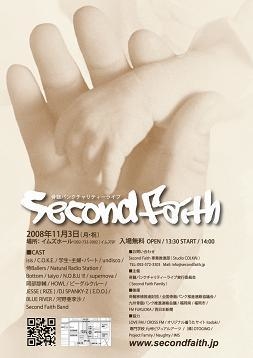 ■ 『 Second Faith 2008 』 〜骨髄バンクチャリティーライブ〜 ■ - 日 時 - 2008年11月3日( 月:祝日 ) OPEN:13:30 START:14:00 終了予定時間 21:30( 予定 ) - 場 所 - IMSホール 福岡市中央区天神1-7-11 9F ( Tel:092-733-2002 ) - チケット - チケットフリー!無料です。 当日、会場に募金箱を設置しておりますので、 よろしければご協力をお願いします。 - CAST - isis / C.O.K.E. / 学生・主婦・パート / undisco / 侍Ballers /Natural Radio Station/ Bottom / taiyo / N.O.B.U !!! /
