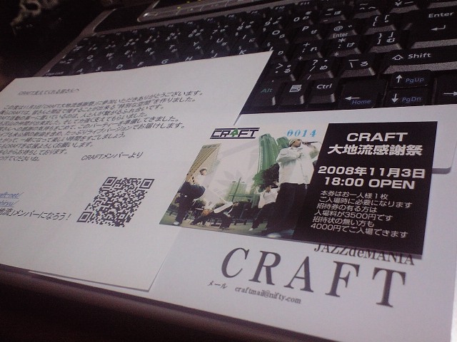 CRAFTとファンが一堂に集う、1年に1度のCRAFT主催のパーティーのお知らせです。 パーティーの参加には、招待券がおひとり1枚必要になりますので事前にご注文(無料)ください。(招待券なしの場合は、当日料金になります) ※招待券注文はこちらから http://craftparty.cart.fc2.com/ ・日程:11月3日(祝日月曜日)文化の日 ・時間:18時オープン〜22時クローズ ・会費:¥3500(招待券持参) ¥4000(当日料金) ・立食スタイル:4H飲み放題+食事付 ・場所:新宿パセラビル6F 新宿グレースバリ (新宿区歌舞伎町1−3−16)