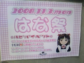 Cafe Mai:lishのHPはご覧になりましたかぁ? 可愛すぎる団長の降臨祭について、告知されましたよヾ(o・ω・)ノ。 ☆:::::::::::::::::::::::::::::::::::::::::::::::::::::::::::::☆ 【誕生祭】はな祭 イベント開催決定! 2008年11月3日(祝月) 【17時まで】公式メイド合わせ 【17時から】黒執●合わせ ☆:::::::::::::::::::::::::::::::::::::::::::::::::::::::::::::☆ 有り難いことに祝日開催です!! なかなかお会いできない方も、今からなら日程調整できそうですね♪ 団員一同、大いに盛り上げちゃいましょぉ!!☆-(・
