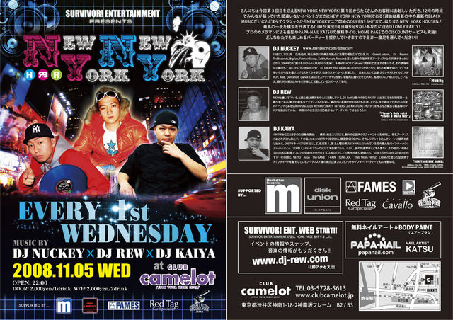 毎回数多くのお客さんにお越しいただいている毎月第一水曜日渋谷CAMELOTで行われているNEW YORK NEW YORK! 11月23日の祝日前CAMELOTとのコラボが決まったこれから楽しみなPARTY!!