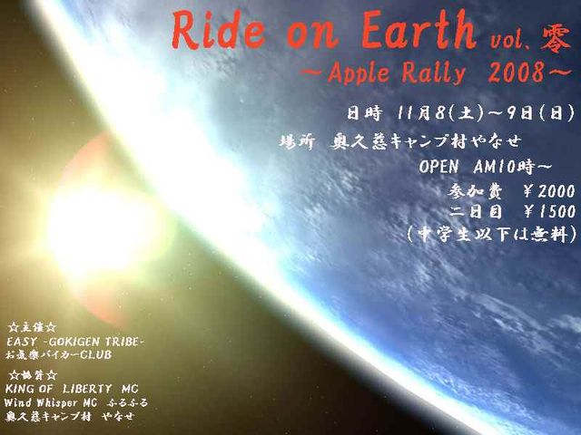 記念すべき零回“Ride on Earth vol零 Apple Rally2008”のハジマリだよ