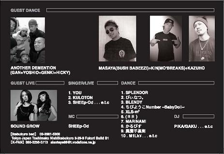・料金:前売り&with flyer ¥1,500/1d(当日¥500 UP)
