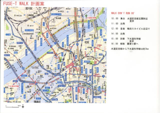 お待たせしました 恒例の「FUSE-T ウォークドントラン08」の企画です。 秋の淀川沿いを皆で散策しましょう。 コミのメンバー以外でも参加OKですので、お友達を誘って来てくださいね。 前回は雨で中止になってしまって、「雨のときのことも考えとかんかい」と、お叱りの発言もありましたので、今回は雨の場合も別案で決行とします(内容は秘密) 行程 朝10時 「大阪市水道記念館」正門前集合 見学 ↓ 地図によるルートで淀川べり散策 ↓
