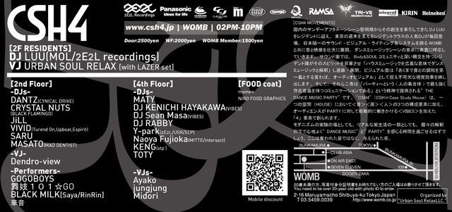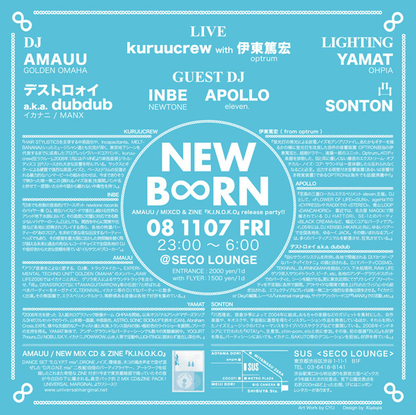 ・料金:前売り&with flyer ¥1,500/1d(当日¥500 UP)