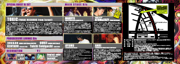 管理人様、告知させていただきます。 -VARIOUS ELECTRO MUSIC PARTY-  ∈Side3∋×YABAI RECORDS 今回のSide3はclub axxcisではなく【THE GAME(渋谷)】での開催となりました。お間違えのないようお願いいたします。 2008年11月10日(第2月曜日) @THE GAME(渋谷) URL :http://www.club-game.com/top.html (上記のURLにて地図見れます。am/pmのB1Fになります) ※混雑を避ける為、入場制限をかける場合がございます。お早めにご入場下さい。 OPEN/START 23:00〜 Doors:3,500yen(1D) W/F:3000(1D) 【MAIL DISCOUNT】 ¥