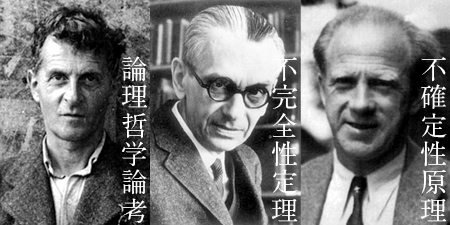 『論理の限界から』-ウィトゲンシュタイン・ゲーデル・ハイゼンベルク- 2008年11月12日 20:00〜 開催場所<気流舎>http://www.kiryuusha.com/blosxom.cgi 参加自由。無料。(ドリンクオーダー、投げ銭歓迎ですね。) 論理の限界のむこうには、何を、考えることが、出来るのでしょうか? ウィトゲンシュタインの『論理哲学論考』、ゲーデルの、『不完全性定理』、 ハイゼンベルクの『不確定性原理』、をつなげつつ、 論理の先にどう踏み込めるかを、考えていきましょう。感じてみましょう。