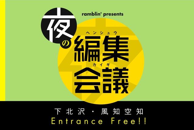 風知空知にて定期的に開催させていただいる、音楽フリーマガジン「ramblin'」主催の飲み会的イヴェントにて、くいだおれ太郎をゲストに迎えたトークショウ(?)が行なわれます。有山じゅんじさんのライヴや、なんと太郎との握手会も! 入場無料なので、ぜひ遊びにいらしてください! ============================= ramblin' presents 夜の編集会議 SPECIAL くいだおれ太郎がやって来た! 2008.11.12(水)20:00〜24:00 @下北沢・風知空知 Entrance Free!!!!!!!!! special talk live 「道頓堀から下