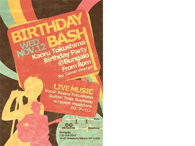バースデーパーティをします!!No charge なのでみなさん気軽に遊びにきてください。 Peformance by Kaoru, Ikemasu Tadaaki and DJ あーろん Music; R&B, Blues, Hip Hop, Reggae etc,. 場所は上記↑