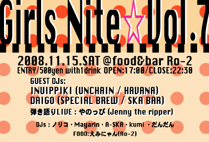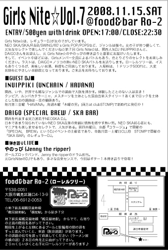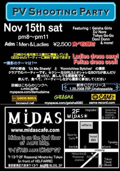 Cover charge: 6500 Yen (3000Yen for 2008 Graduate) Includes Food & Drink