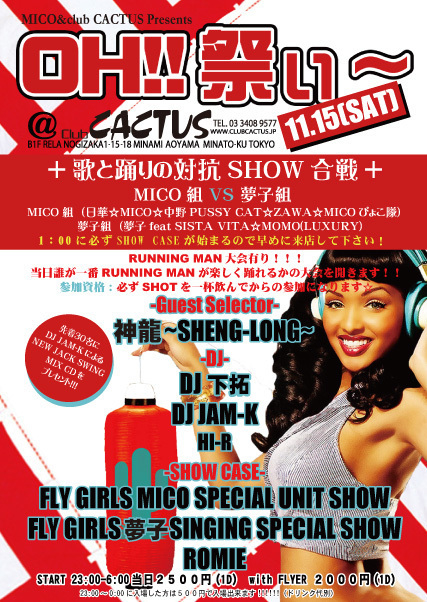 11月15日 (土) OPEN 21:00~ CLOSE 6:00