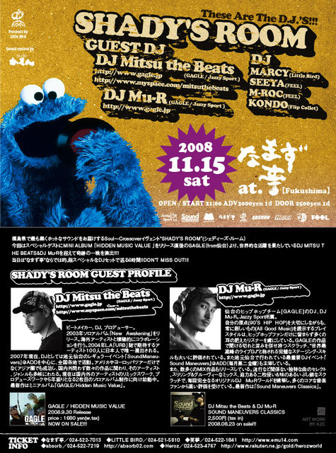 来る11月15日土曜、福島が誇る"なまず亭"に仙台はGAGLEより"DJ Mitsu the Beats & DJ Mu-R"が登場!