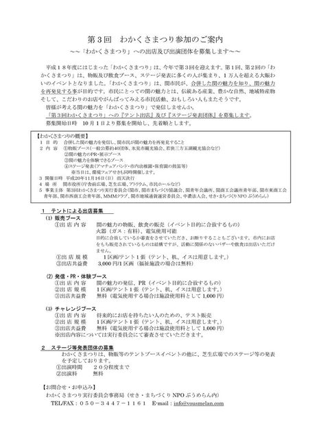 関市内在住、通勤、在学の人参加OK。 第3回わかくさまつり 詳細は岐阜県関市コミュ管理者たかさんまで http://mixi.jp/show_friend.pl?id=22146
