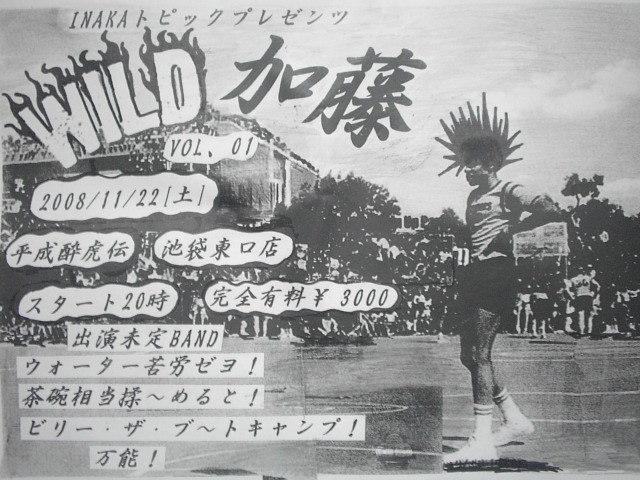 募集締め切り延長 五万人まで、あと少し ギリギリまでガンガります 特別ゲスト決定 ドMハリセン冒険家 「突っ込まれ屋アキラ」 乞うご期待 上映PVタイトル決定 「GET WILD加藤がセルフコントロールで七日間戦争! ガンガれ!テツヤ君」PV上映決定 あの古川タロヲを震え上がらせた 10/28早朝の神谷町ゲリラ宣伝活動・・・ ついに防犯カメラが捉えたっ衝撃の瞬間 クライム・ストーリー2008今夜、あなたが目撃者 ワイルド加藤スペシャルPV