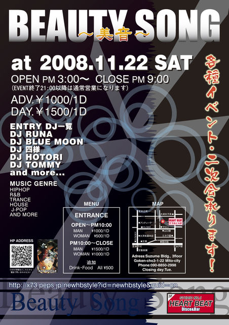 私「蒼月」とheartbeat店長RUNAが送る「beauymusic」開催