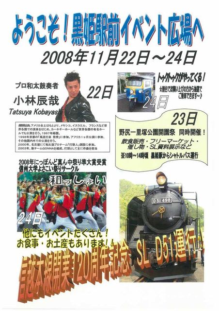 SLがやってくる3日間。 駅前でたくさんのイベントを企画してお待ちしております