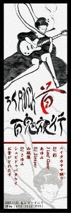 【DATE】 11/22(sat) 17:00〜21:30 【参加費】 ¥1000(1D付) 【LIVE】 お首がとれたず / 3 Leaf Clover / シュビドゥバタケイ / ニイタカヤマ独り / あゆみ / 山賊隊 【DJ】 dj sleeper / 彩 / さゆみ ===ROCK,POPS=== お首がとれたずホームページ! http://ip.tosp.co.jp/i.asp?I=okub