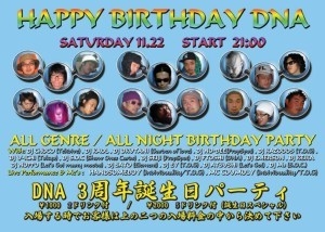 HAPPY BIRTHDAY DNA 2008.11.22(sat)at clubDNA START 21:00〜 1000円 2ドリンク or 2000円 5ドリンク 入場時に入場料金をお決めください DJ CHOCO KAOL OKUTANI NO-BEE SEIJI U-ICHI KAZOOS EY S.O.C FTOSHI EMERSON KEIKA NOPPO SATO ATSUSHI Ms LIVE HAND SOME BOY COUMOLY